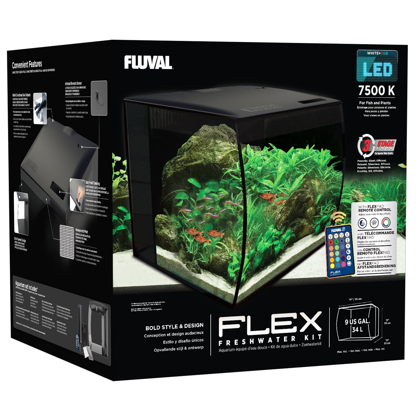 Fluval 9 Gallon Flex Aquarium Kit Black Walmart Com Walmart Com