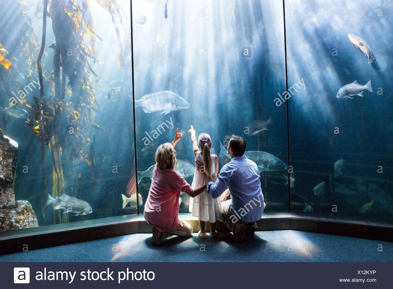 Wear View Of Family Looking At Fish Tank Stock Photo Alamy